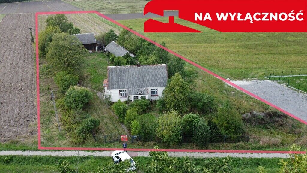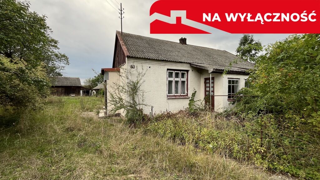 Siedlisko w postaci murowanego domu, budynków gospodarczych istodoły na dużej działce o pow. 0.8771 ha przy drodze krajowej nr 7